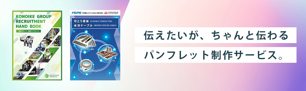 企画構成・デザイン、印刷手配まで一括対応。伝えたい強みを整理し、手に取りたくなるパンフレットでブランド価値を高め、営業・集客を後押しします。