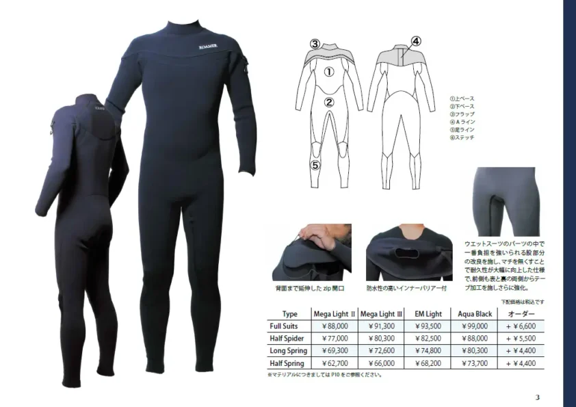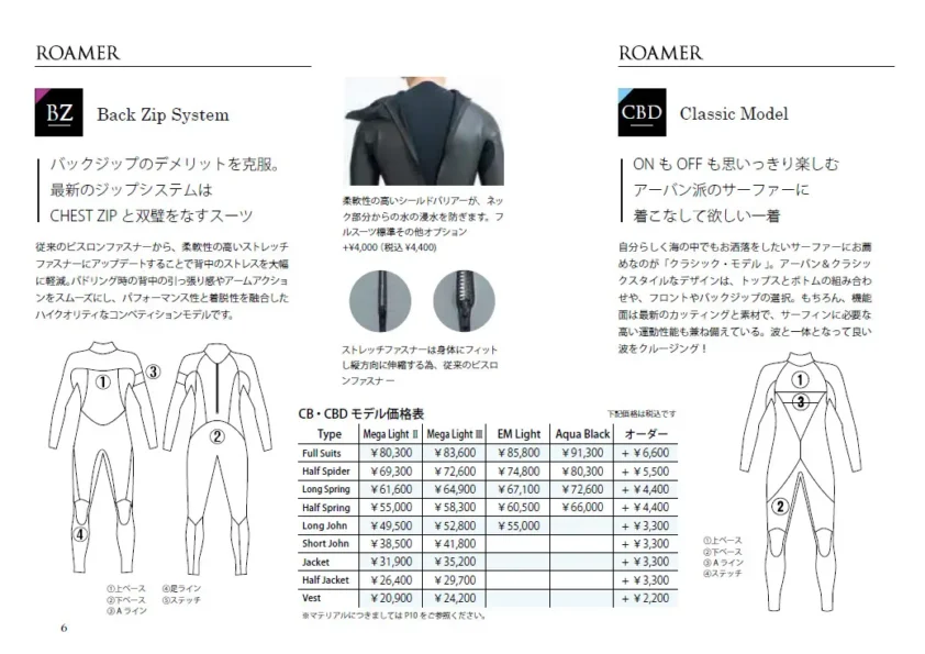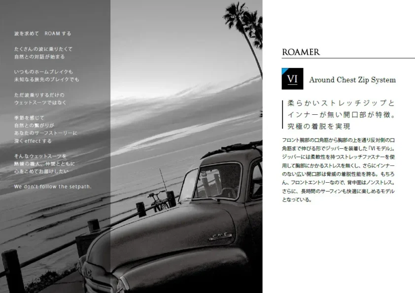 日本製カスタムオーダーウェットスーツの企画・販売。高品質な素材と技術で常に質の高い製品をご提供するROAMER様のウェットスーツ製品カタログを作成させて頂きました。