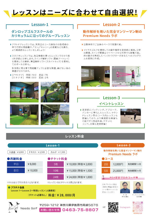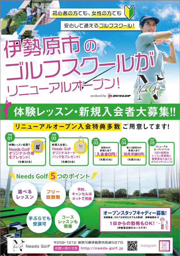 Needs Golf様 ゴルフスクールオープン告知用チラシ チラシ マエダシンサク Needs Golf様 ゴルフスクールオープン告知用チラシ 業種 告知用チラシ制作 サイズ A4サイズ ページ数 1 加工 – コメント Needs Golf様からご依頼を頂いたゴルフスクールリニューアルオープン告知用のA4チラシです。デザインから印刷・ポスティングまでワンストップで対応。反響率も非常に高く再印刷のご依頼も頂きました。ゴルフスクールのポイントや体験レッスンなどのイベント情報がユーザーに明確に伝わるよう意識して制作をさせて頂きました。 【仕様】A4チラシ・両面デザイン・印刷 川越デザインワークスのパンフレットデザイン実績 理化学研究所様 一般公開2024パンフレット 2025年11月11日 詳細ページへ サン電通エンジニアリング パンフレット 2025年11月11日 詳細ページへ 神奈川工科大学様 ポケットフォルダー付きパンフレット 2025年10月31日 詳細ページへ 森久保CAメディカル株式会社様 三つ折りリーフレット 2025年10月31日 詳細ページへ 理化学研究所様 一般公開公開用イベントパンフレット 2025年10月31日 詳細ページへ SOMPOインスティチュート・プラス様 生産性に関する研究会の報告パンフレット Vol.2 2025年10月31日 詳細ページへ SOMPOインスティチュート・プラス様 生産性に関する研究会の報告パンフレット Vol.1 2025年10月31日 詳細ページへ 国土交通省航空局様 採用案内パンフレット制作 2025年10月31日 詳細ページへ 鉄道博物館様-企画展パンフレット制作 2025年10月31日 詳細ページへ 厚生労働省様-公的年金シミュレーター・利用案内パンフレット 2025年10月27日 詳細ページへ 川越デザインワークスへのパンフレット制作に関するお問い合わせはこちら 049-249-3731 この記事を書いた人 ディレクター 前田 晋作 過去に100社以上のパンフレットの制作実績を有する経験豊富なディレクター兼デザイナー。「都内+パンフレット制作」のキーワードで自社サイトをGoogle検索で1位に表示掲載させた実績を持つ。 大手企業や国土交通省、厚生労働省などの官庁関連のパンフレットの制作を多く手掛ける。パンフレットのデザインから印刷まで幅広い業務内容に精通。